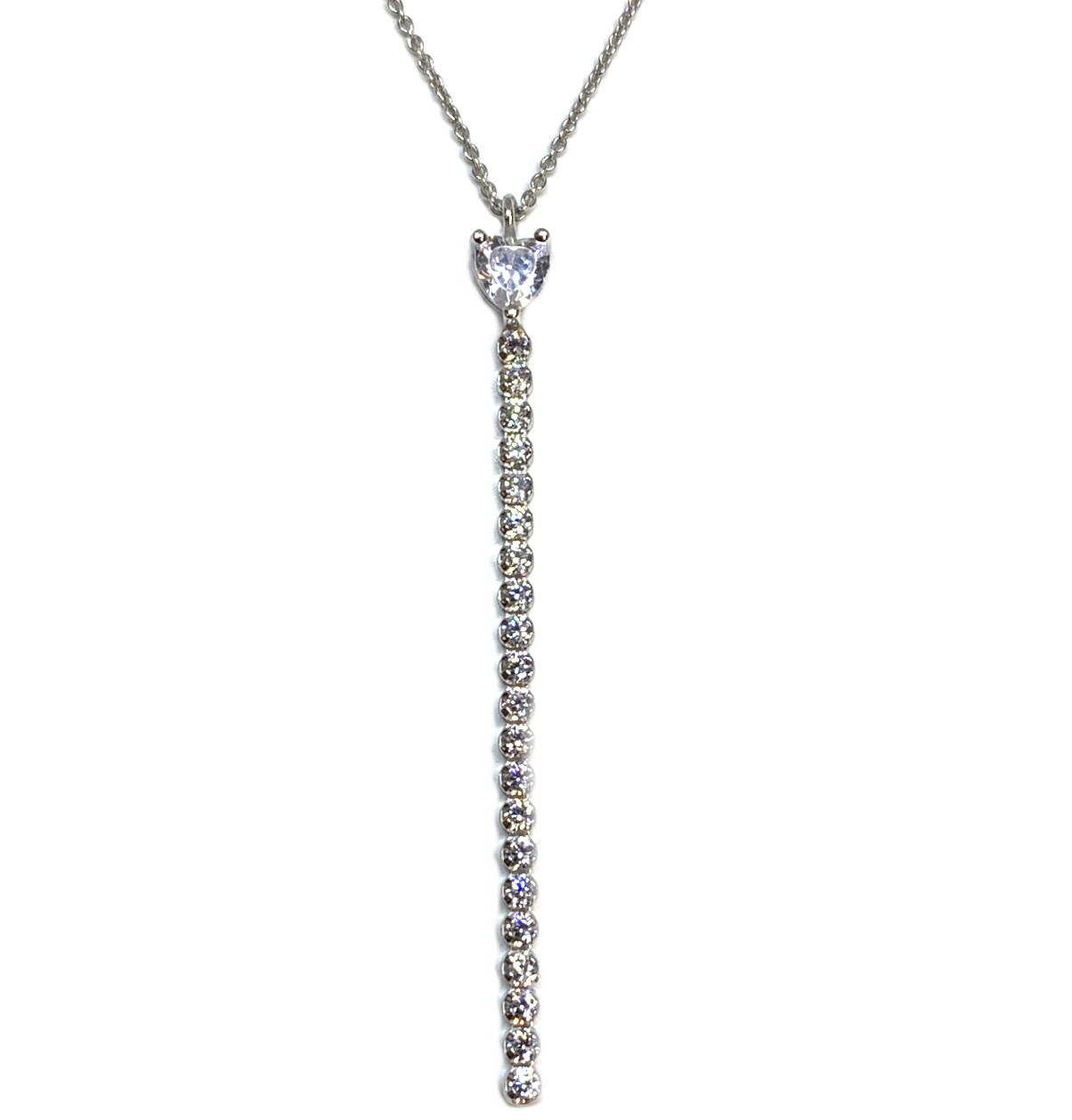 Hopeinen ankkuriketju jossa Zirkonia-sydän, josta roikkuu zirkonia-ketju pituudeltaan 50 mm.