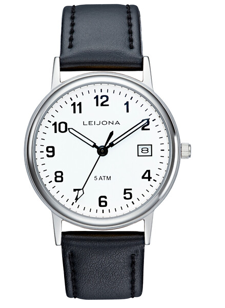 Leijonan klassisen tyylikäs unisex-rannekello mustalla nahkarannekkeella. Kellon runko on hopeanväristä ruostumatonta terästä.