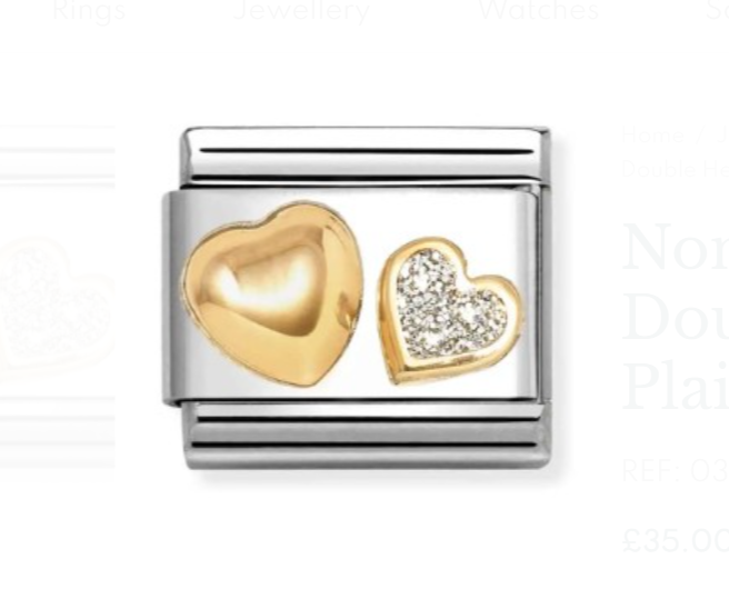 - NOMINATION kullatut Sydän-symbolit glitterillä, 030220/26