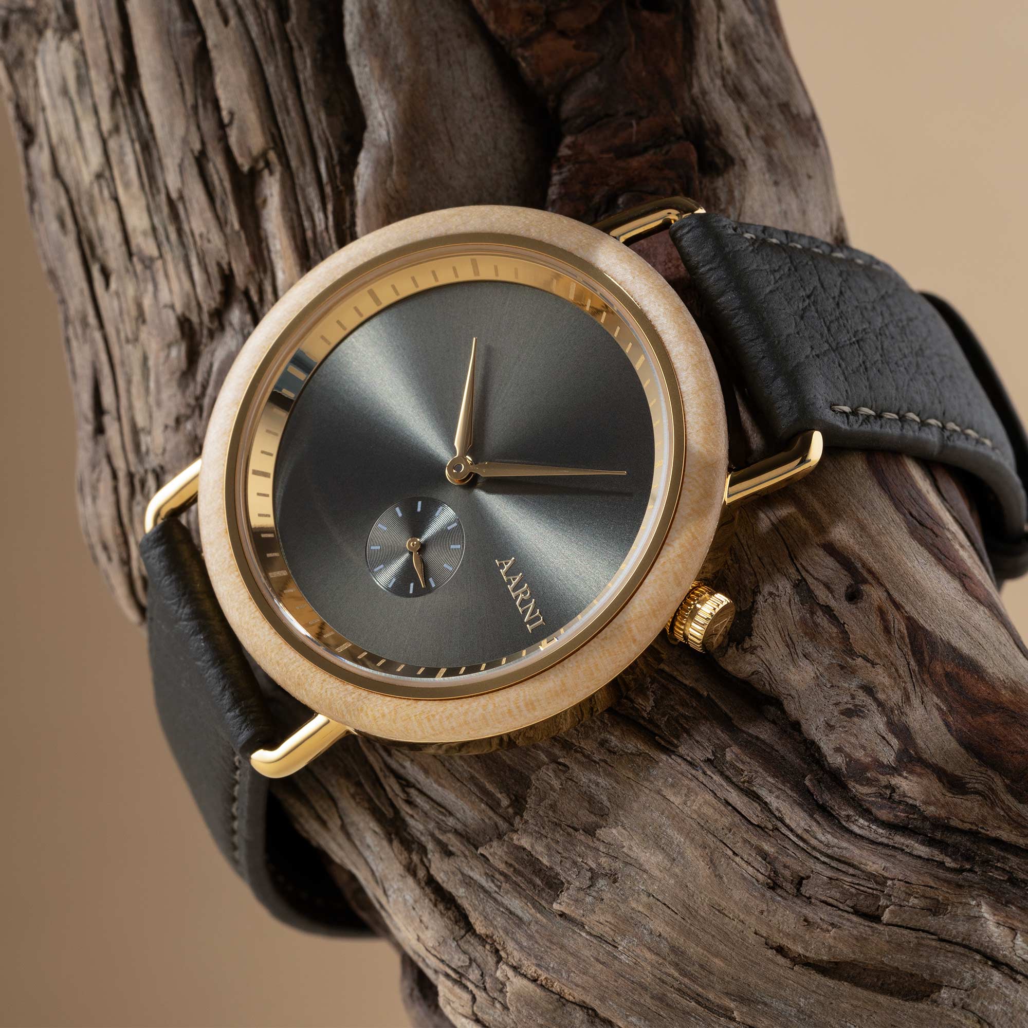 Aarnin 10-vuotis juhlavuoden kunniaksi on suunniteltu tämä Sirius-rannekello. Kelloja on valmistettu 500 kappaleen numeroitu erä. Kellon kehys sekä ranneke ovat valmistettu suomalaisesta koivusta, kellotaulu on upea oliivinvihreä. Lisäksi mukaan saat hirvennahkaisen oliivinvihreän rannekkeen.