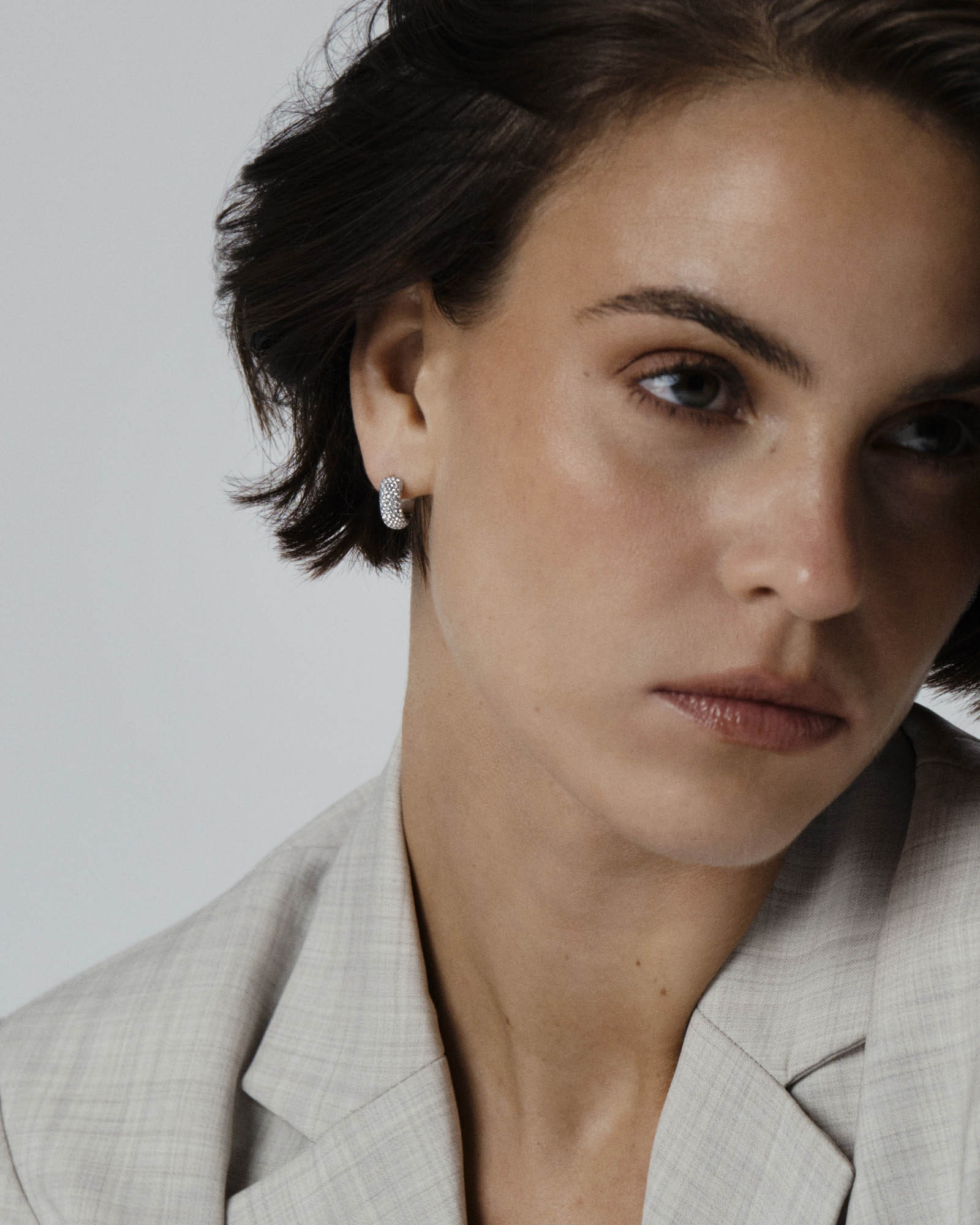 Näyttävät hopeanväriset teräksiset Zirkonia-korvarenkaat