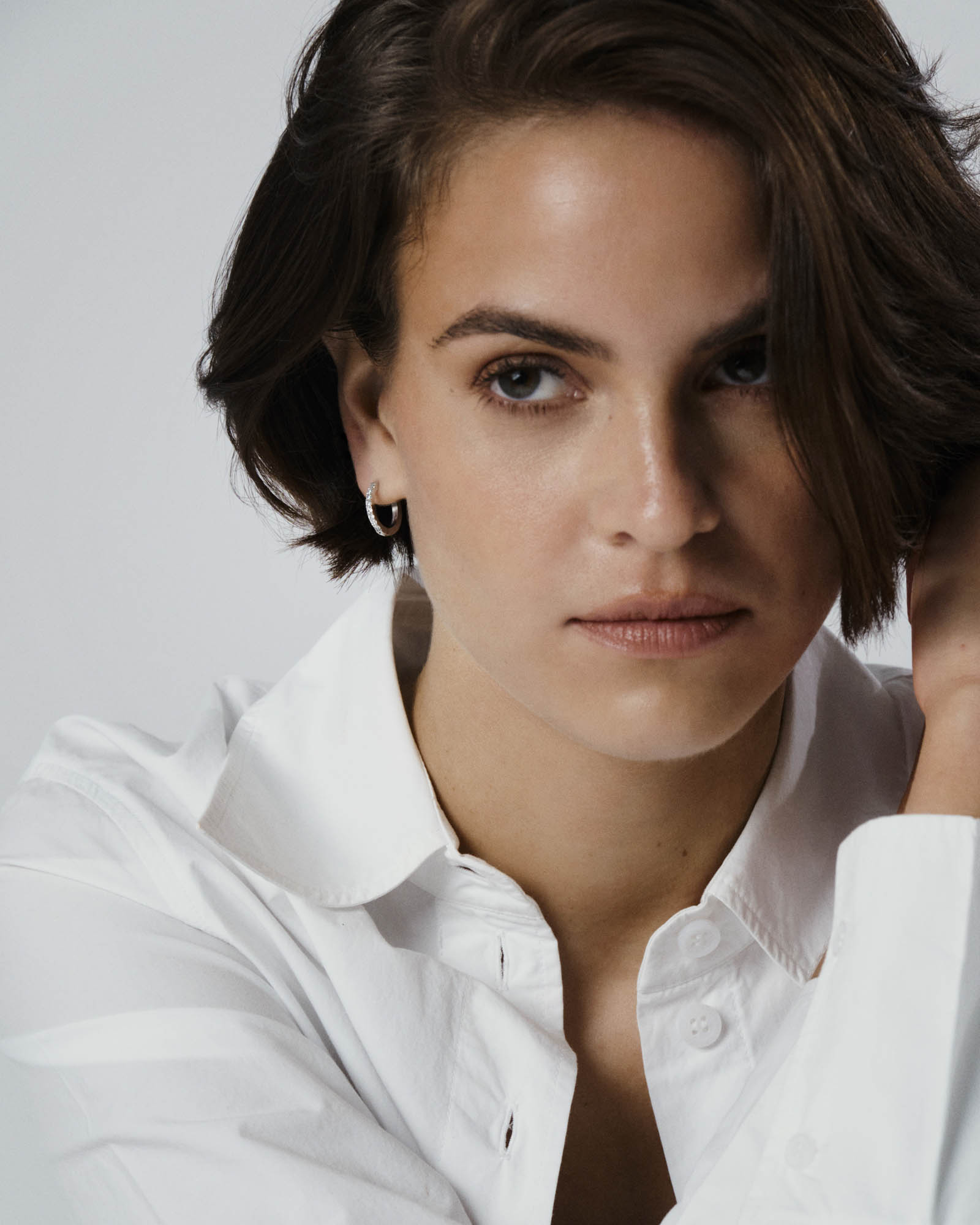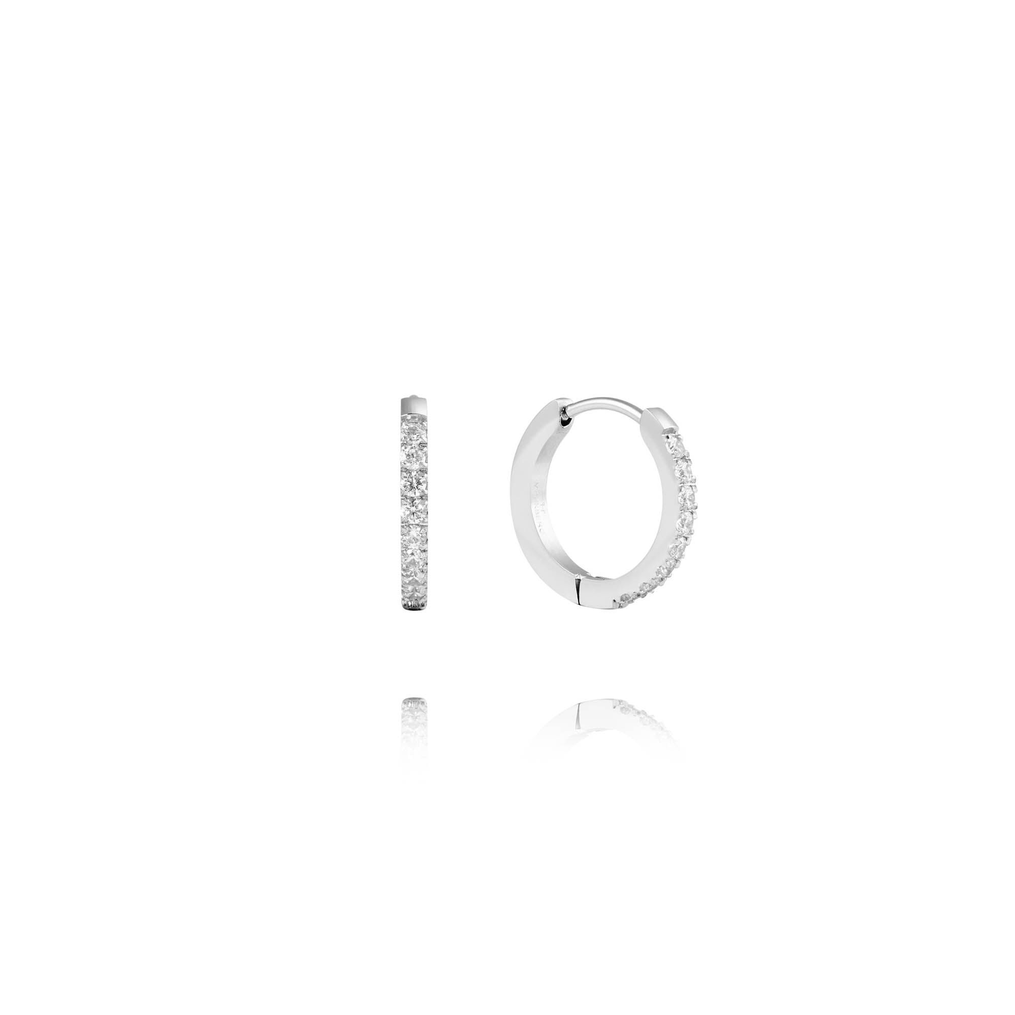 Tyylikkäät hopeanväriset teräksiset korvarenkaat kirkkailla zirkonioilla