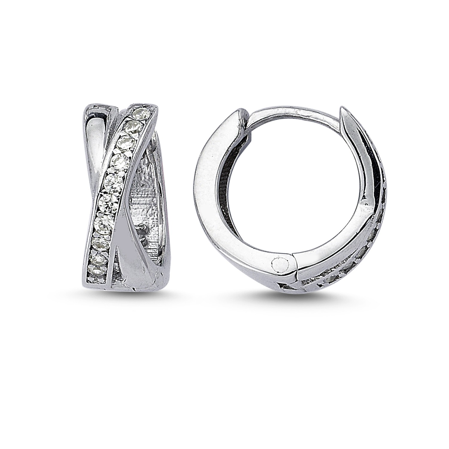 Tyylikkäät saranoidut korvarenkaat joissa etupuolella ristikko ja kirkkaat zirkoniat