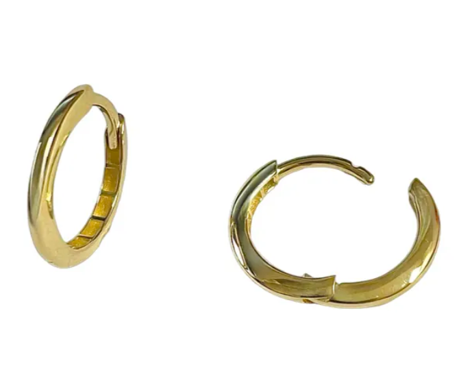 Tyylikkäät keltakultaiset korvarenkaat joissa napakka saranalukitus sekä puolipyöreäprofiili-runko