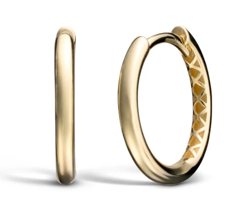 Tyylikkäät keltakultaiset korvarenkaat joissa napakka saranalukitus sekä puolipyöreäprofiili-runko