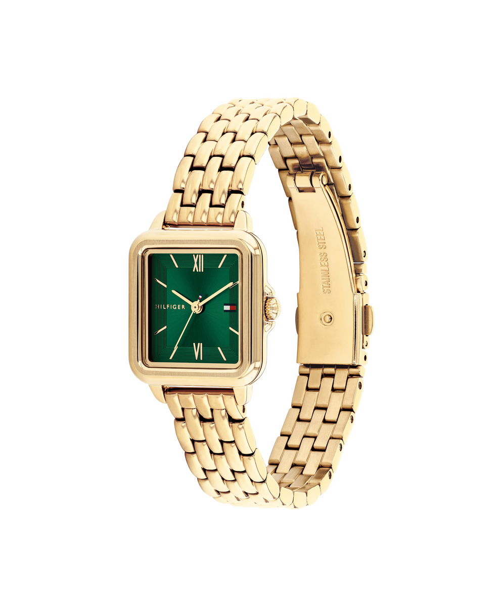 Tommy Hilfiger 1782858 on klassinen ja ajaton asuste kaikkiin tilanteisiin. Kellossa on tyylikäs vihreä kantikas kellotaulu kullanvärisillä yksityiskohdilla.