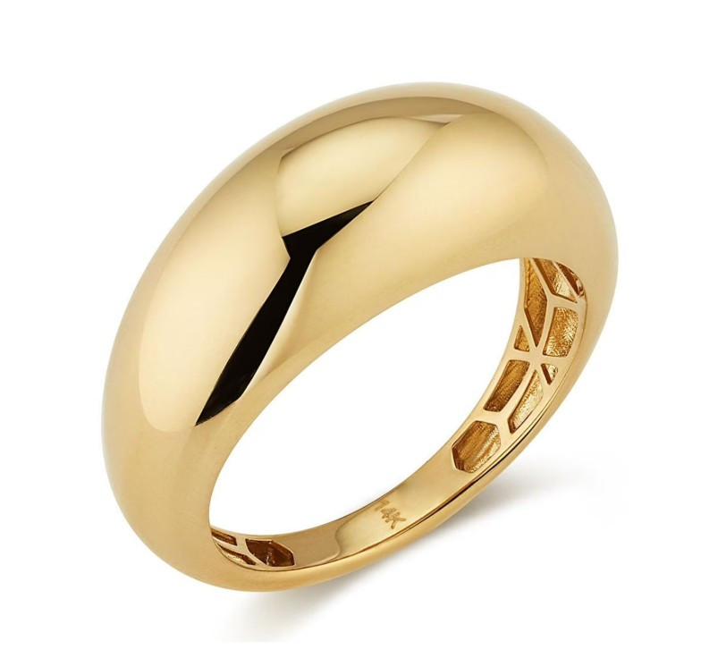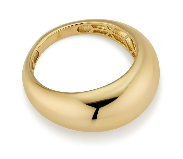 Tämä tyylikäs ja näyttävä sormus on valmistettu 14 karaatin keltakullasta. Runko kapenee taaksepäin.