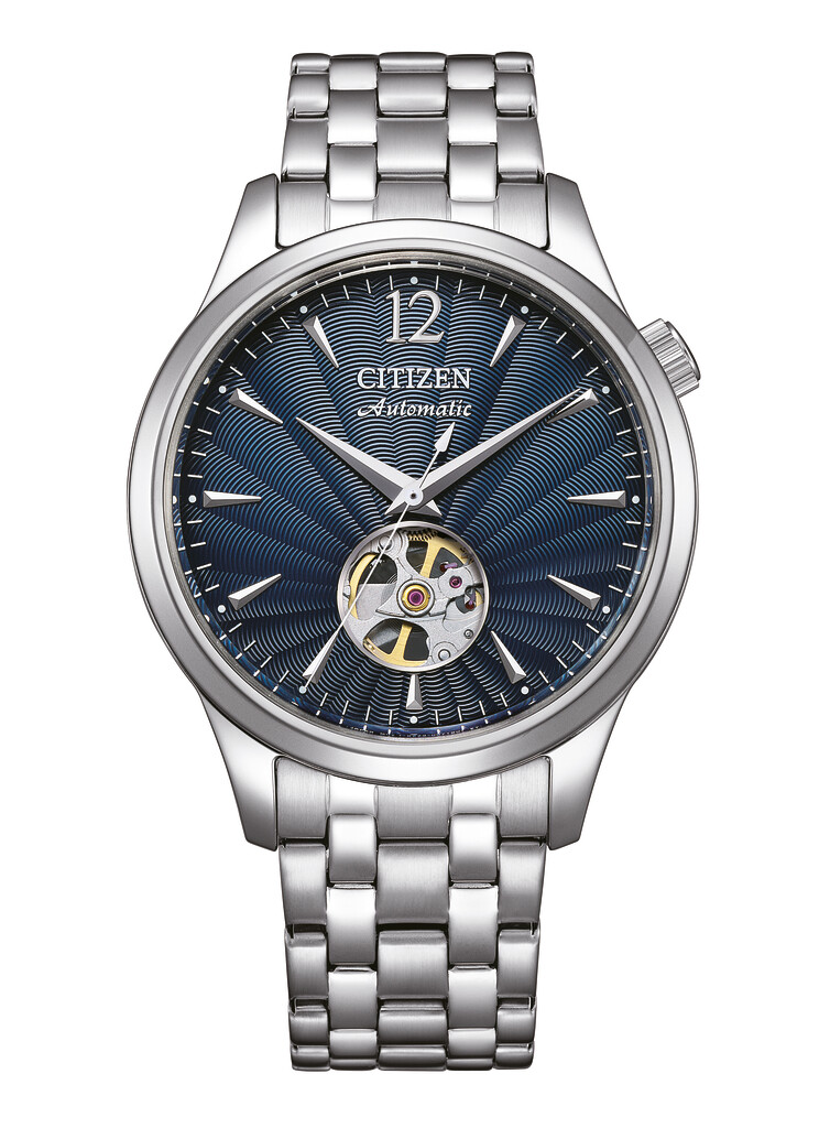 Citizen Automatic NH9131-73L on tyylikäs miesten rannekello, siinä on ruostumattomasta teräksestä valmistettu 40 mm leveä runko. Tummansininen kuvioitu kellotaulu paljastaa osan koneistosta, takaosa on kokonaan avoin. Mekaaninen koneisto on 8229 kaliiberia ja sen käyntivara on peräti 40 tuntia.