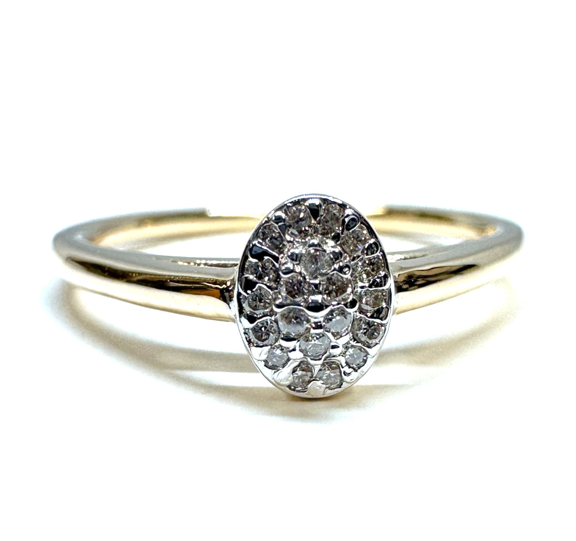Tämä timanttisormus on valmistettu 14 karaatin keltakullasta, sormuksessa on kaksikymmentä 0,003 HSI timanttia. Sormus on tasarunkoinen (2,1mm) ja istuu kauniisti vaikka toisen sormuksen rinnalle.