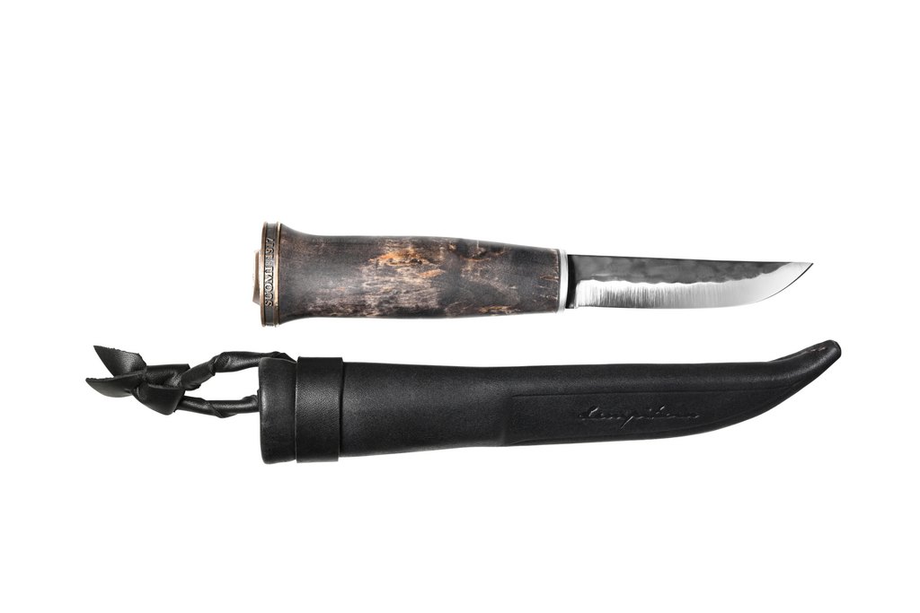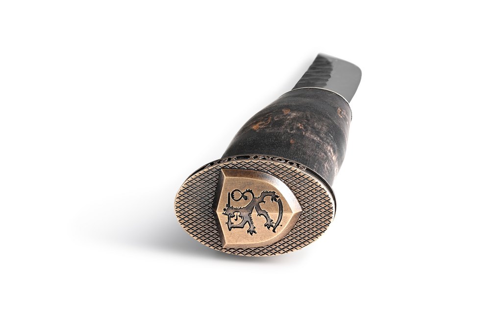 Isänmaa-puukko on suomalaista käsityötä alusta loppuun, siinä on upea pronssinen hela, vahva nahkatuppi ja visakoivuinen kahva. Puukon kokonaispituus on 210 mm, josta hiiliteräksinen terä on 95 mm. Ilmainen kaiverrus!