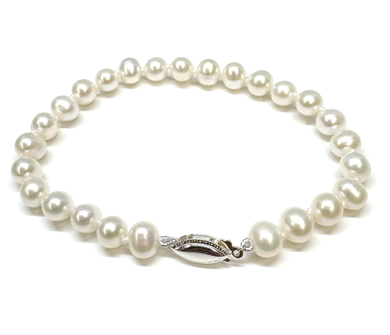 Upea Helminauha ranteeseen jossa aidot viljellyt makeanveden helmet ja kiinnitys klassisella kotelolukolla.