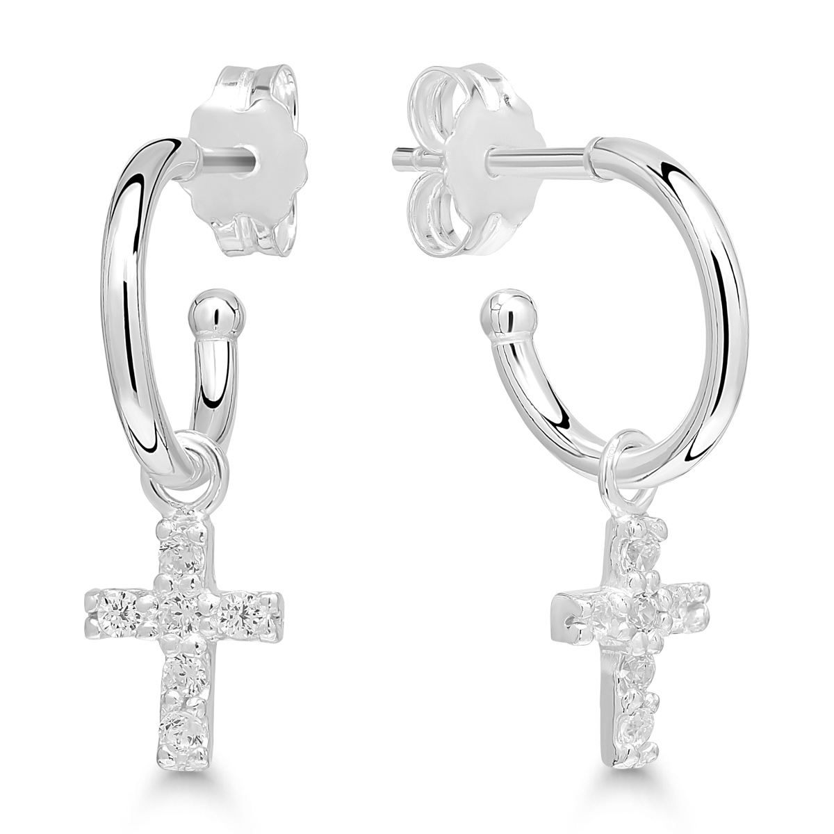 - Hopeiset Korvarenkaat roikkuvilla zirkonia-risteillä, AE-210416Z