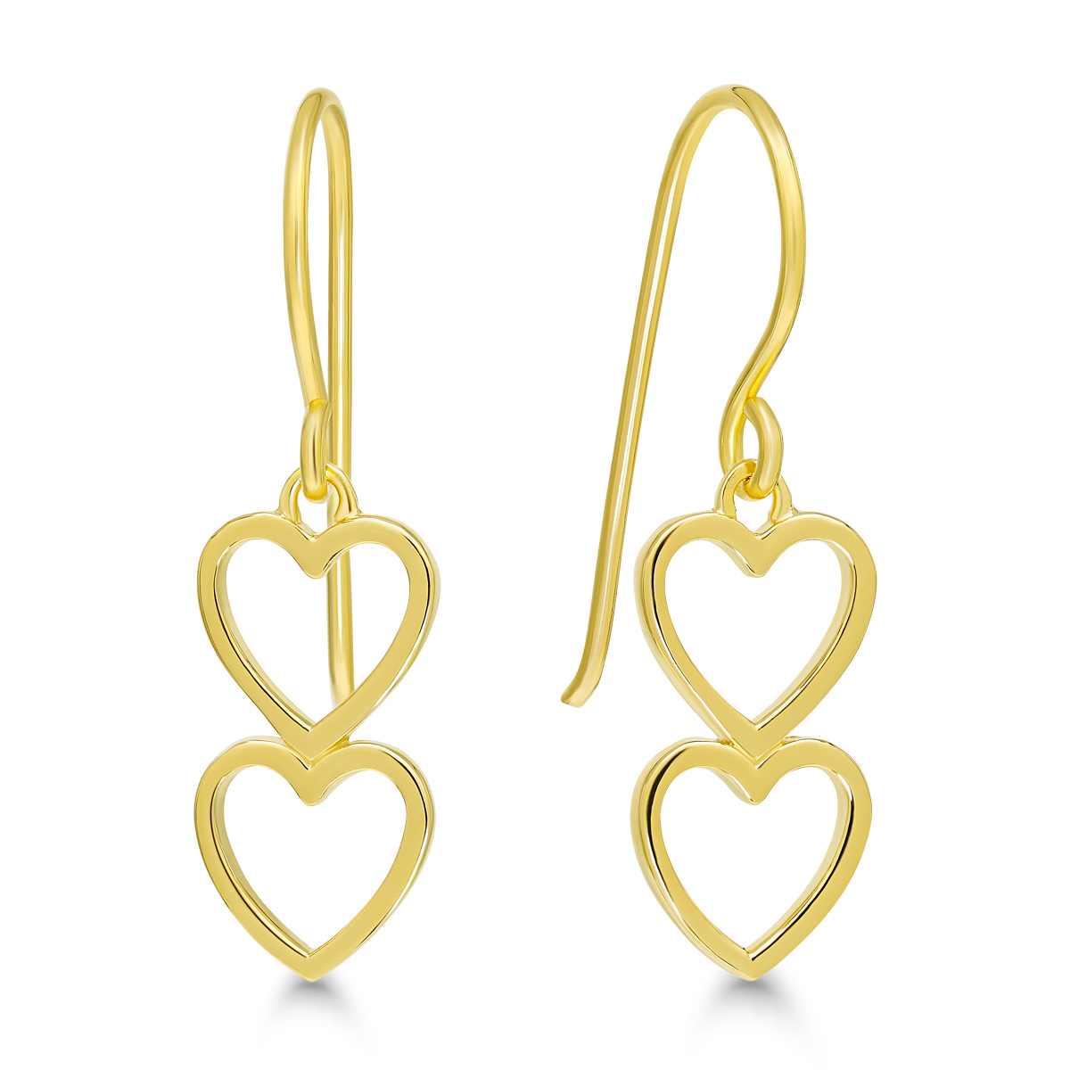 - Hopeiset kullatut roikkuvat Tupla-sydän-korvakorut, WE-40923GP