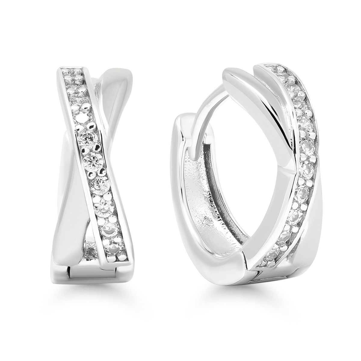 Saranakiinnitteiset upeat korvarenkaat joissa koristeena kirkkaita zirkonioita.