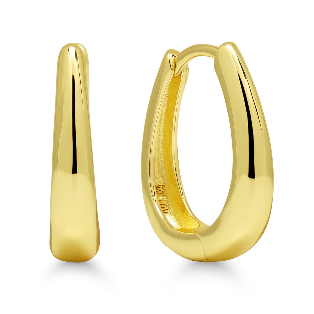Saranakiinnitteiset tyylikkäät korvarenkaat joissa ovaalinmallinen profiili, joka levenee alaspäin.