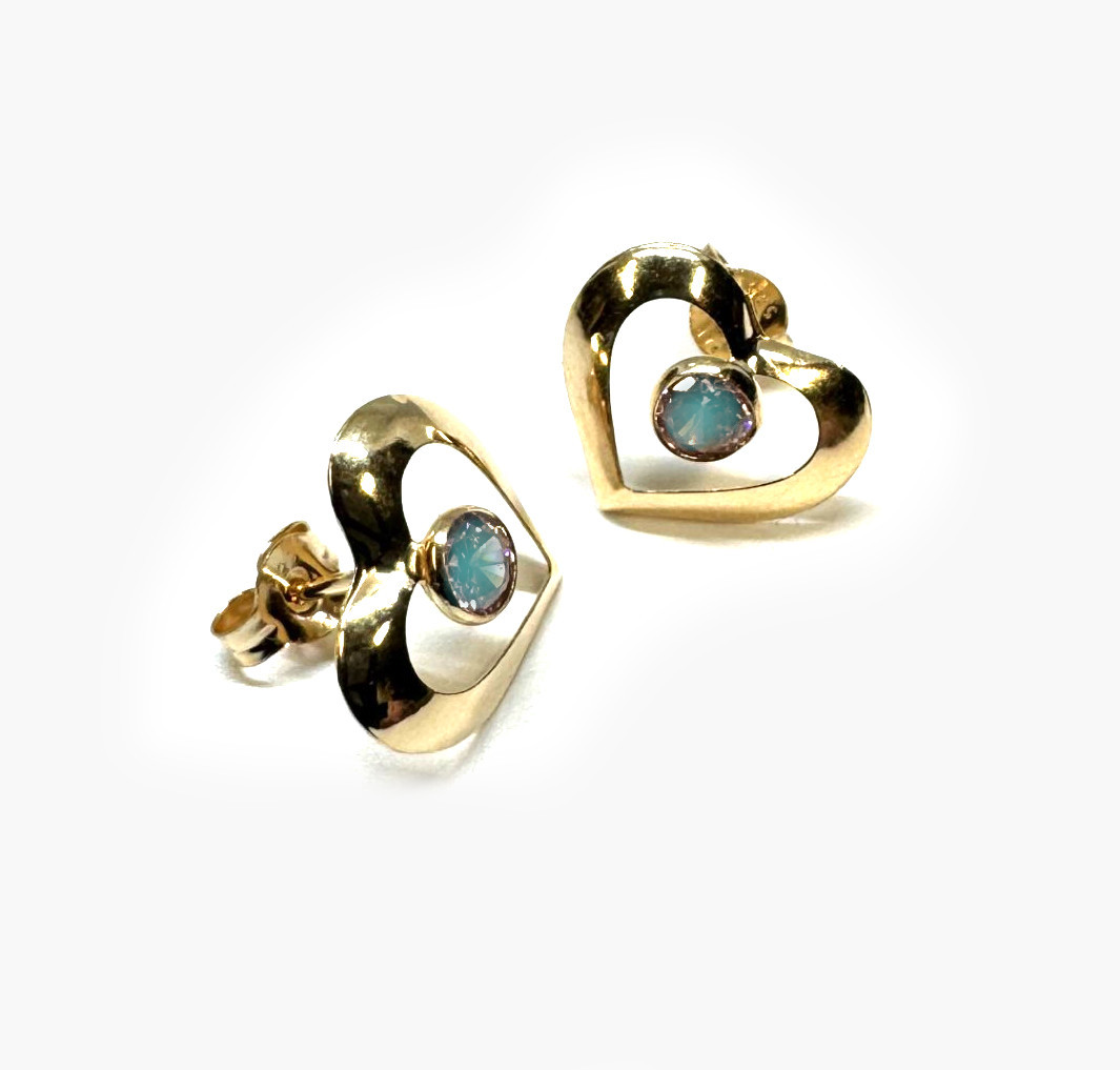 Kultaiset Sydän-korvakorut turkoosilla zirkonialla, 20238