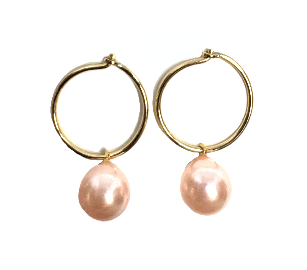 Kevyet lanka-korvarenkaat joissa irroitettavat vaaleanpunaiset helmiäis-helmet