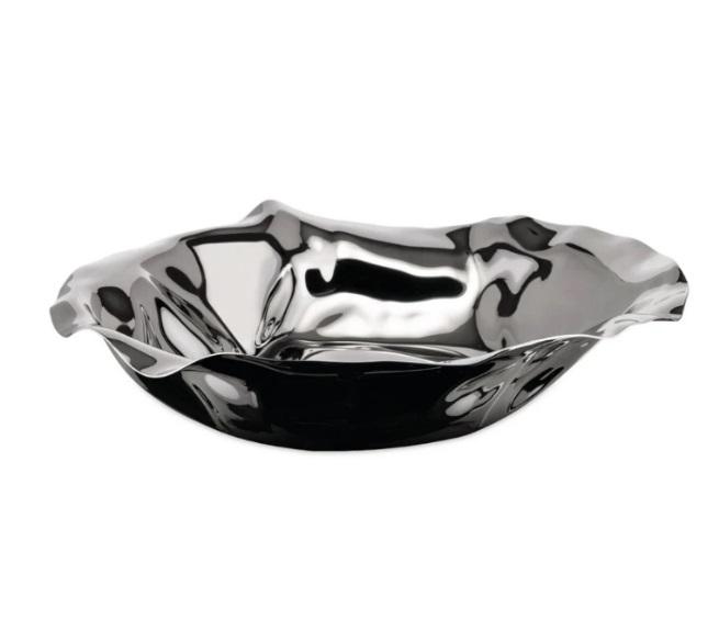 Upeassa Sarria-teräskulhossa on hieno kiiltävä pinta ja epäsäännöllinen muoto.