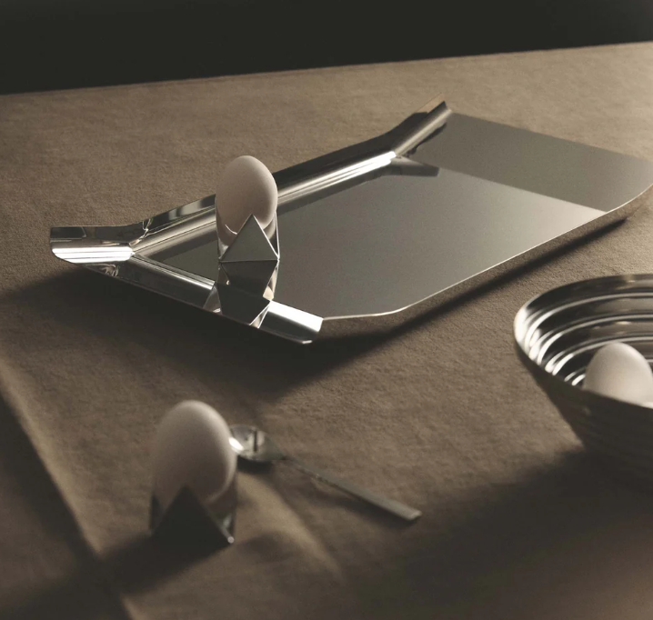 Linjakkaassa Arran-terästarjottimessa on hieno kiiltävä pinta ja vähäeleinen muotoilu.
