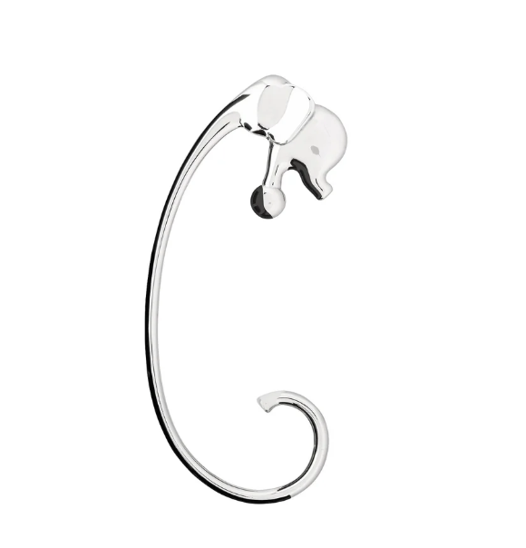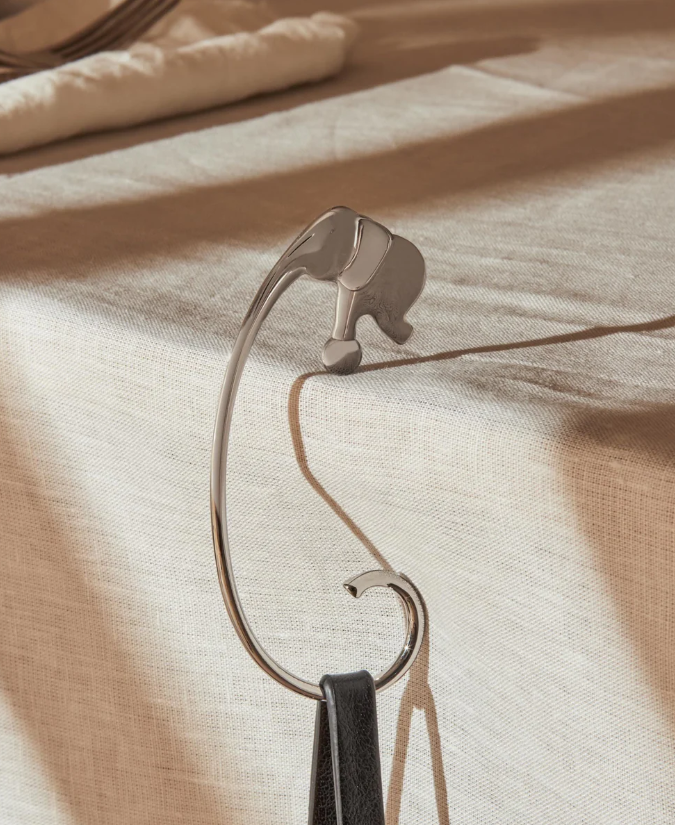 Hauska käsilaukku-koukku pöydän reunaan jossa elefantti-hahmo.