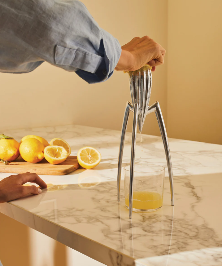 Ikoninen Philippe Starckin Sitruspuserrin joka on upea esine mutta myös toimiva puserrin johon saat helposti astian alle.