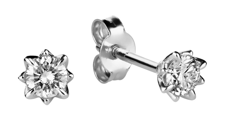 Upeat yksikiviset Rosa-timanttikorvakorut 0,10HSI timanteilla. Säihkyvät timantit on istutettu upealla pitsimäisellä kruunuistutuksella.