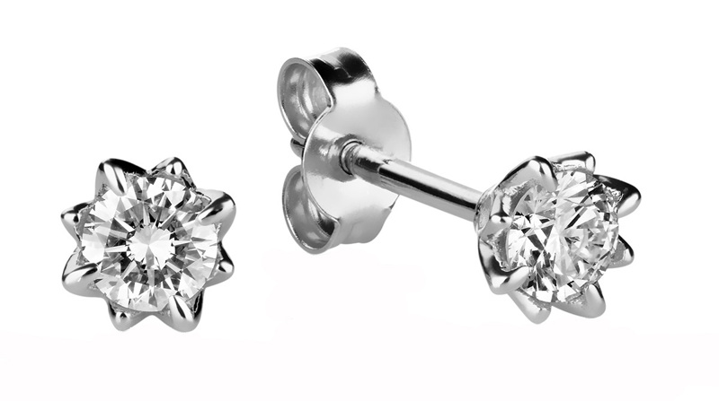 Upeat yksikiviset Rosa-timanttikorvakorut 0,15HSI timanteilla. Säihkyvät timantit on istutettu upealla pitsimäisellä kruunuistutuksella.