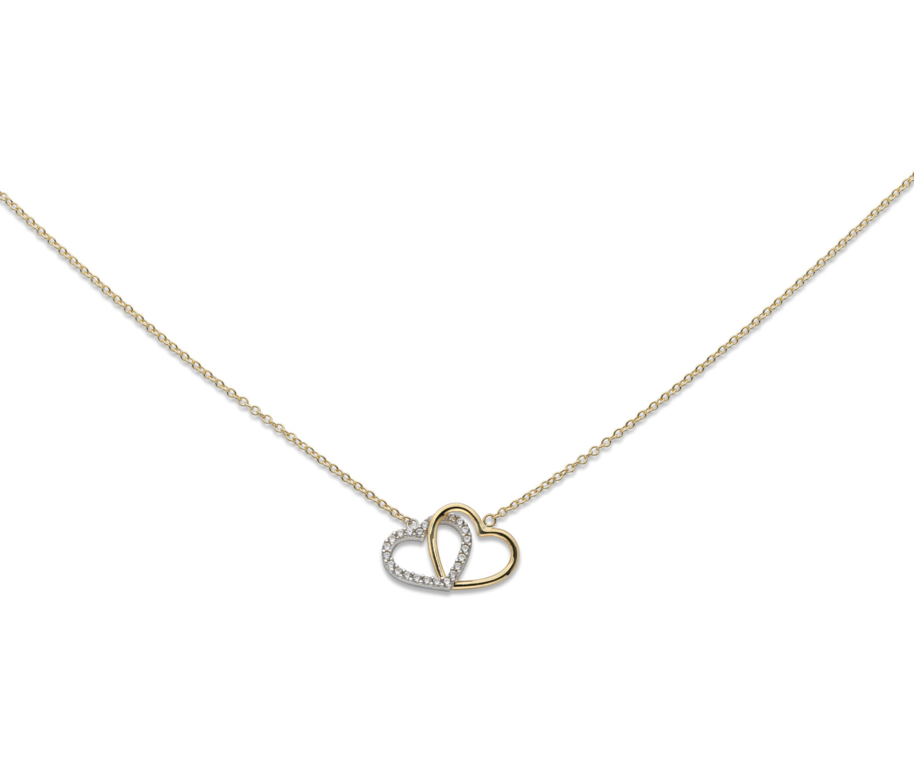 Keltakultainen Tuplasydän-zirkonia-kaulakoru, 01-74-270-45