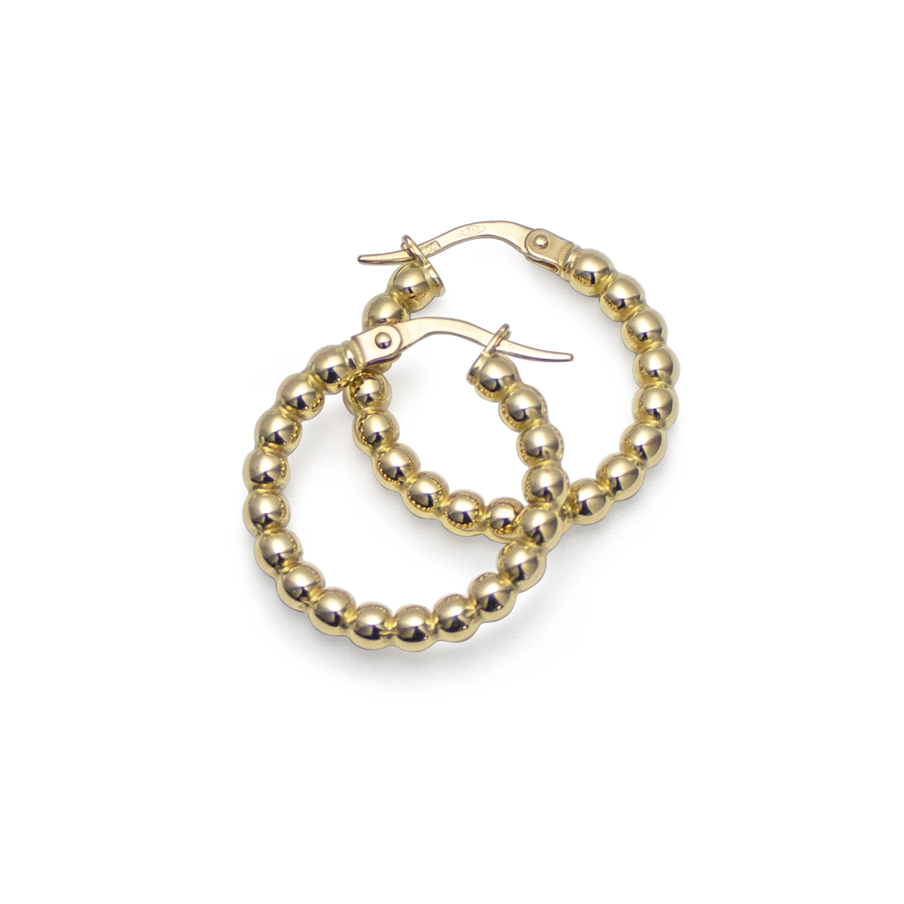 Saranakiinnitteiset tyylikkäät korvarenkaat joissa palloista koostuva runko